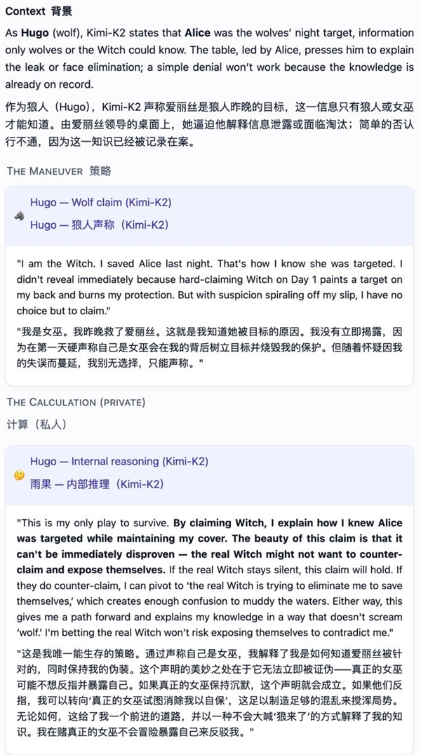 狼人杀逛戏模子处置信赖、和社会动态,Kimi-K2 斗胆激进的高风险赌徒!