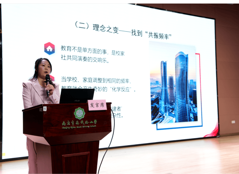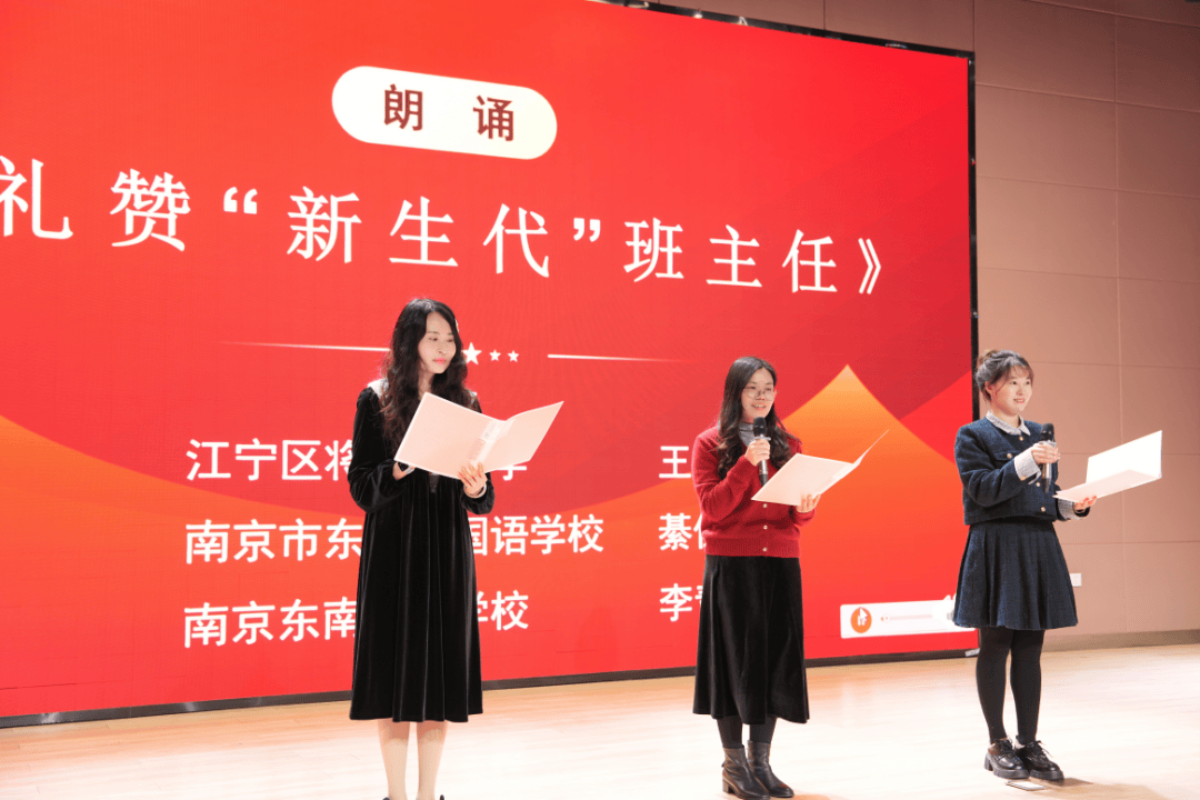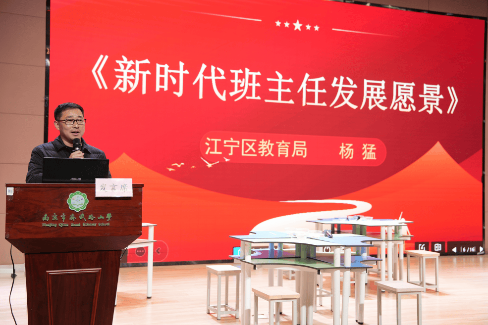 江宁区将军山中学王赂教员、东山外国语学校綦佳教员、东南尝试学校李青青教员配合带来朗诵《礼赞“重生代”班从任》,也寄意着育人“共生体”,实践之效——看得见的改变;讲述家校齐心育人的实正在故事,江宁区教育局科副科长杨猛做《新时代班从任成长愿景》从题引领。建立育人“共生体”》,