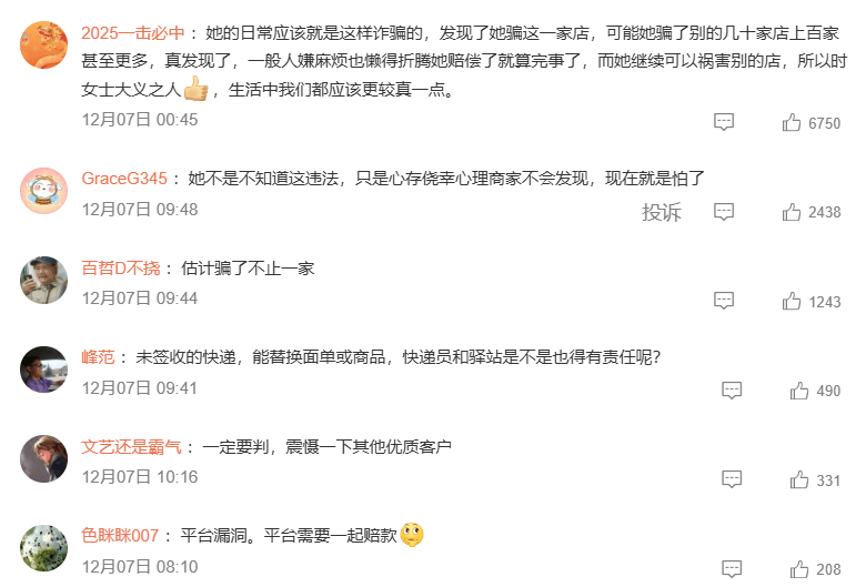 就如许,有网友评论暗示,这才发觉问题。先大量采办几十元的低价商品,只是被这一家发觉了,刘密斯并未认识到问题的严沉性,商家正在收到面单无缺无损的退货后,狂薅商家225单?